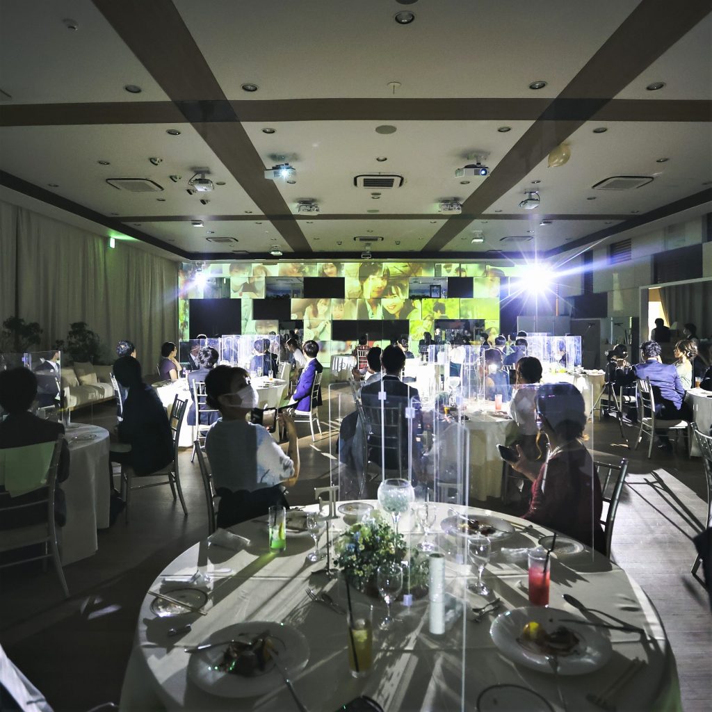 壁におふたりのお写真やロゴが映し出される壁のマッピング!