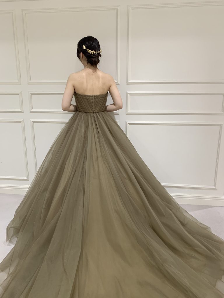 カラードレスには珍しいオリーブカラーのお洒落な1着