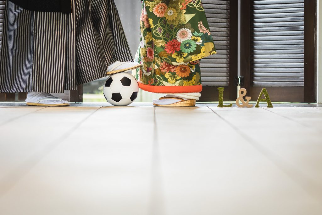 おふたりの大好きなサッカーボール×イニシャルオブジェのオシャレな一枚!