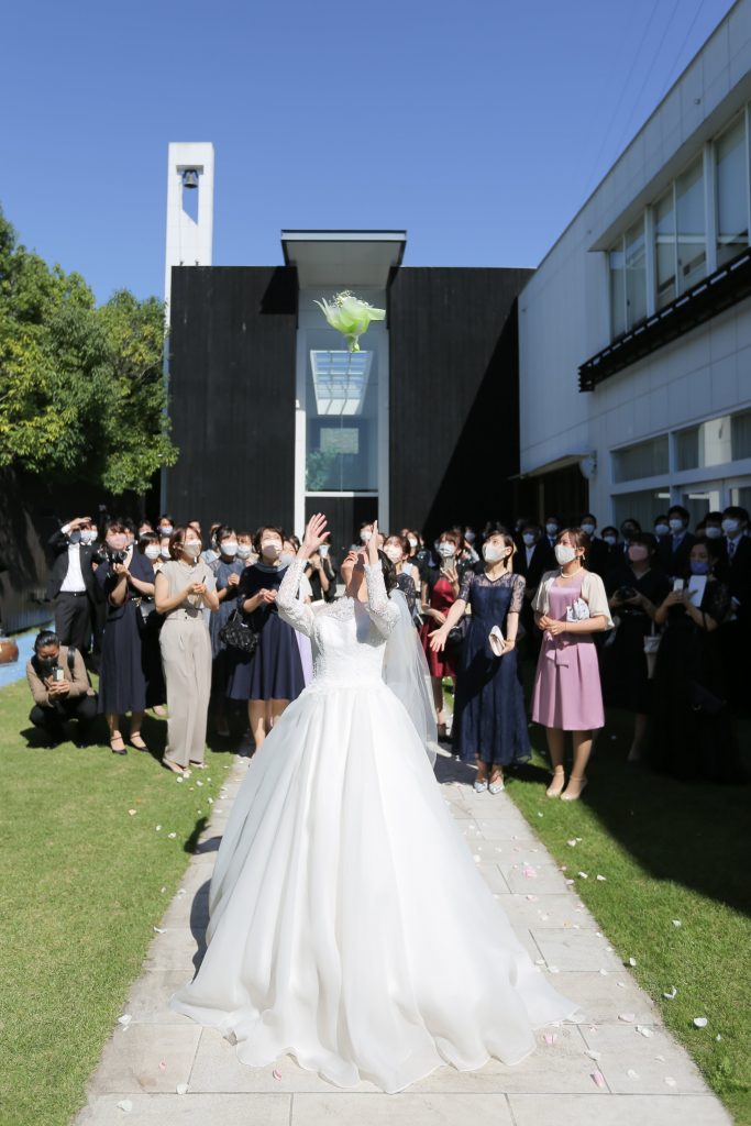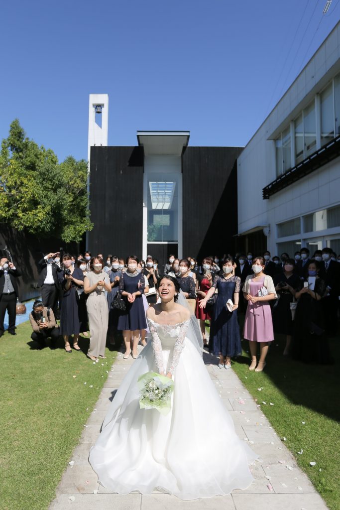 ブーケをキャッチされたゲストの方も思わず笑顔に!