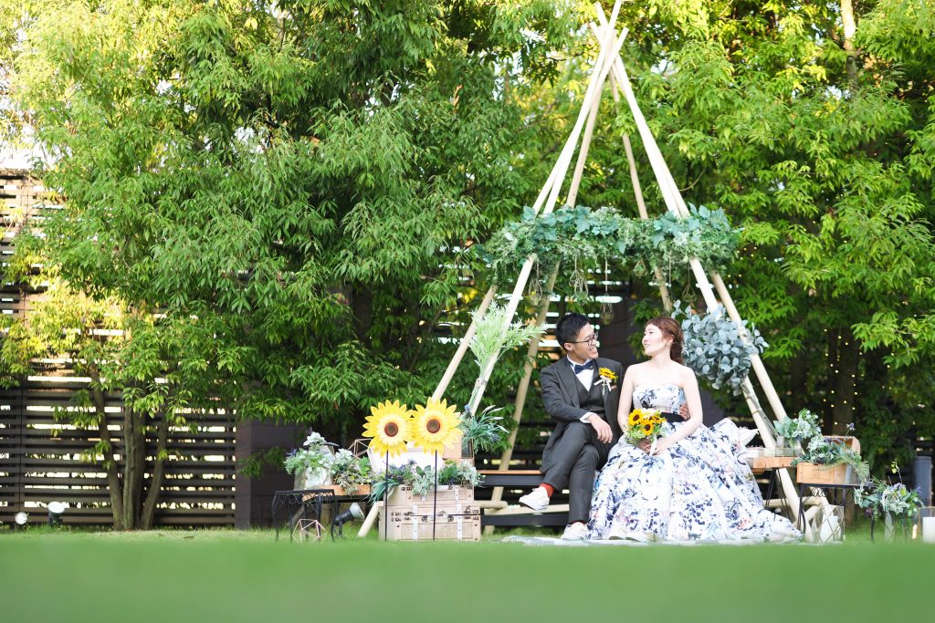披露宴会場だけでなくガーデンにもひまわりを…♡