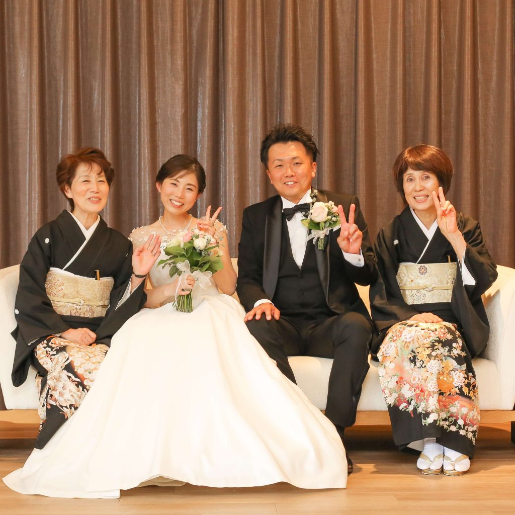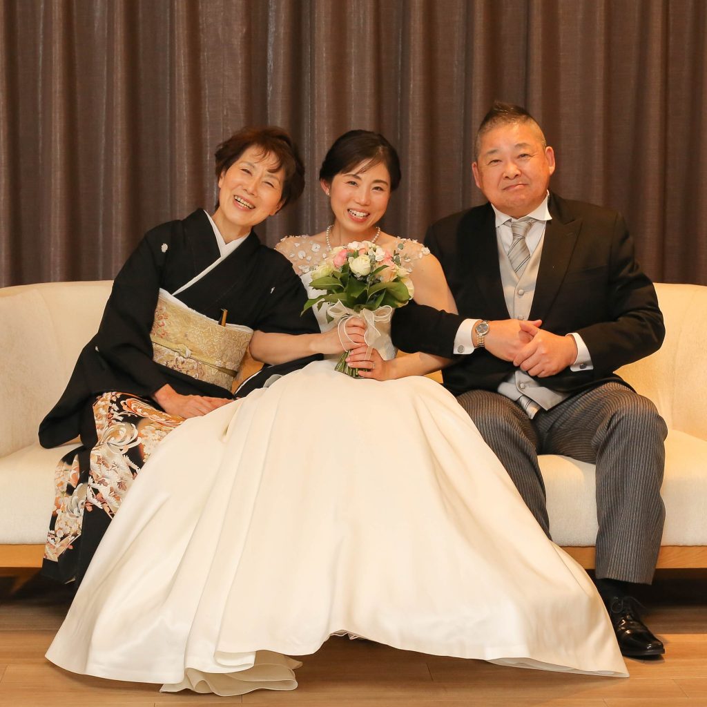 新婦様の両隣でとっても嬉しそうに腕を組む親御様*