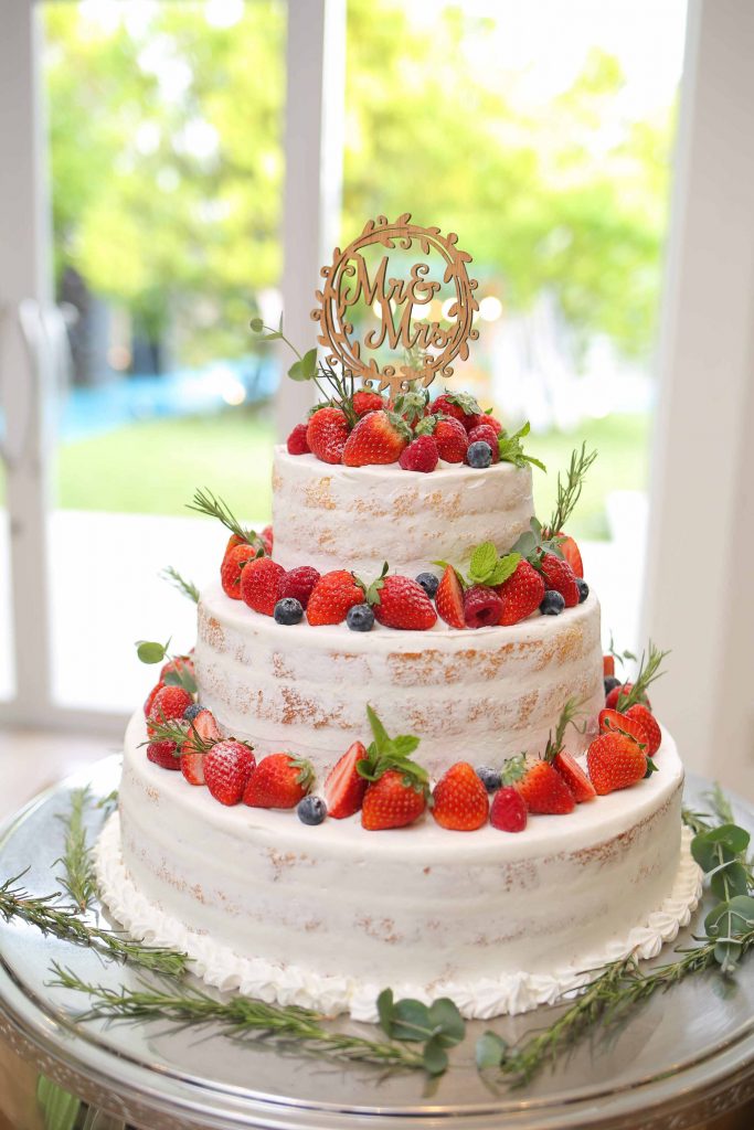 《王道のイチゴをたっぷり使った定番のネイキッドケーキ》