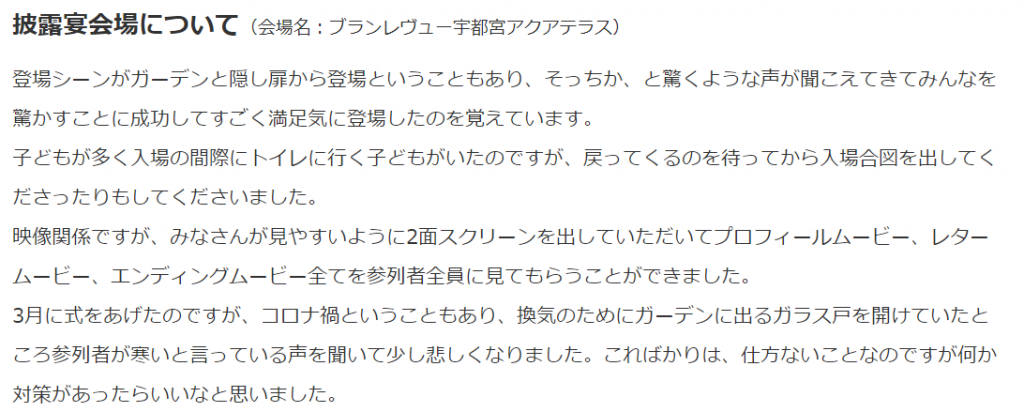 よりおふたりやゲストの方々に満足いただける時間になります。