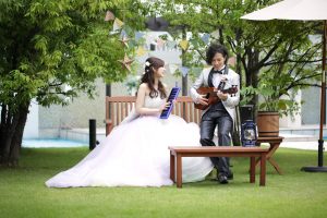 お2人の後ろ広がるガーデンは、ゲストの皆様への最高のプレゼントに♪