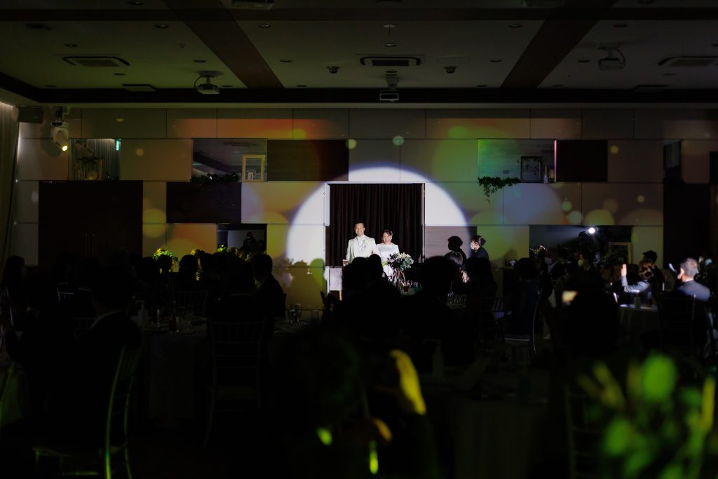 新婦様の好きなアイドルの推しカラーを使用したマッピングに大好きな曲を合わせての入場も叶います。