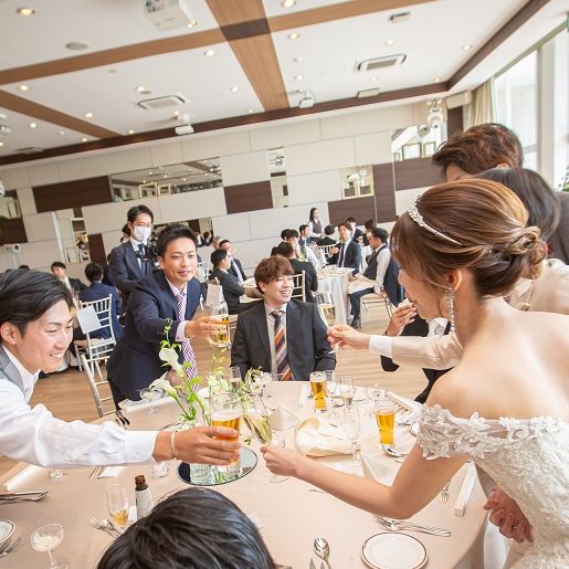 披露宴ではゲストとの乾杯ラウンドからスタート!