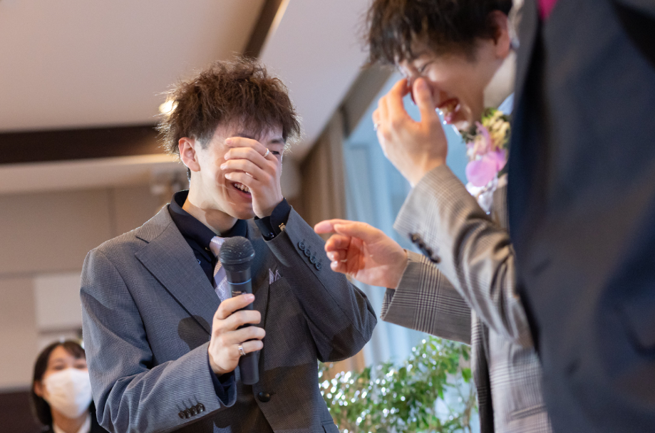大切な兄弟からいただいた言葉を聞いて思わず涙する新郎様