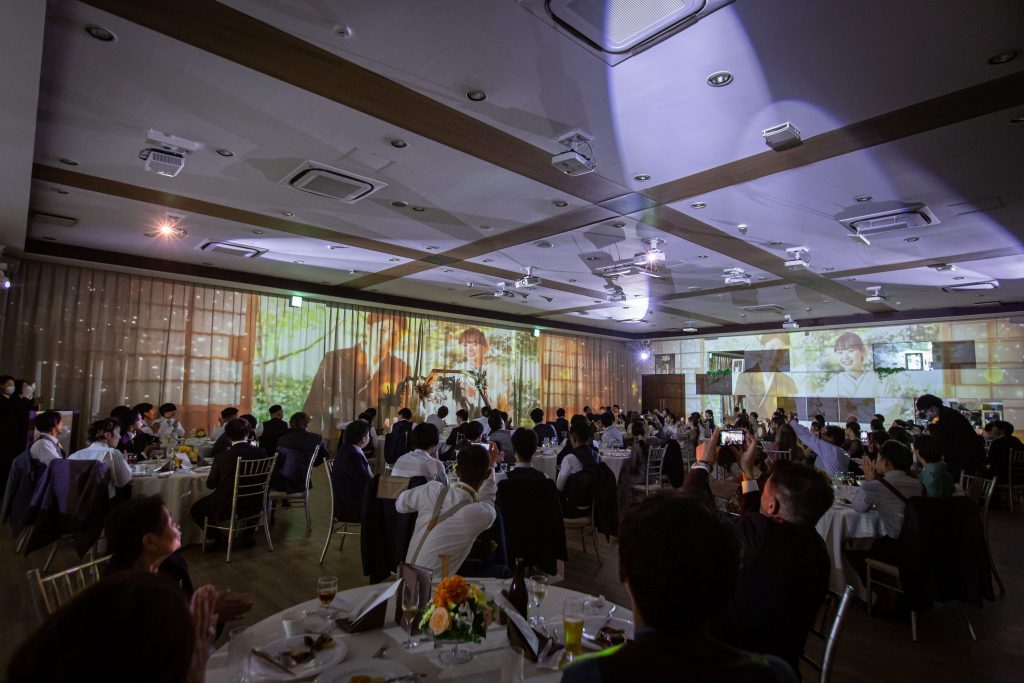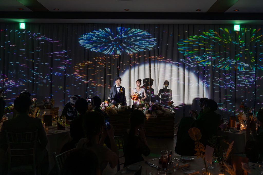 おふたりが会場に入ると打ちあがる花火のマッピング