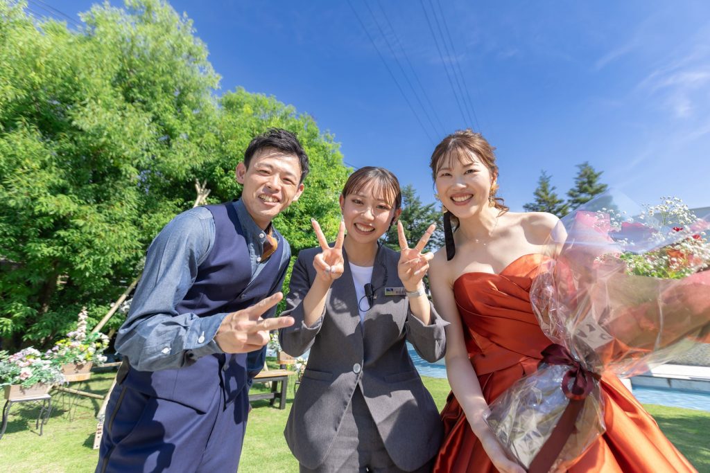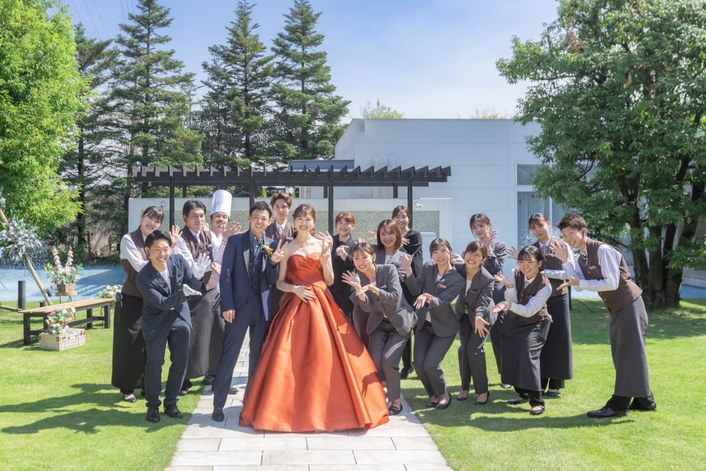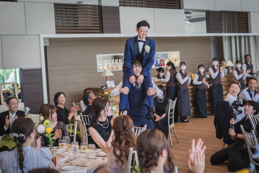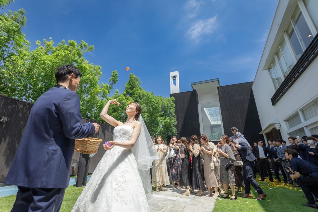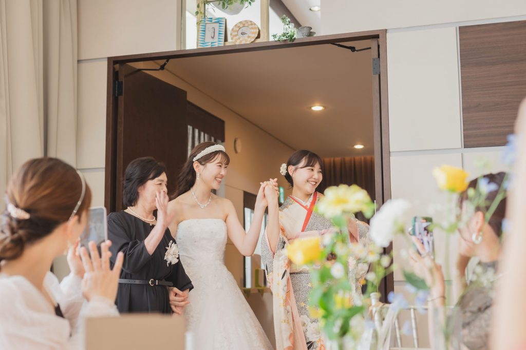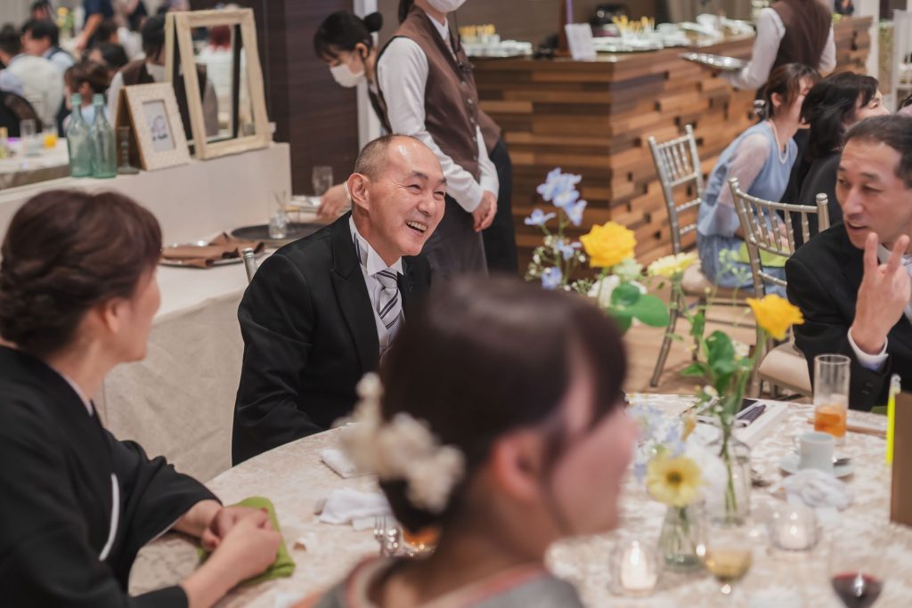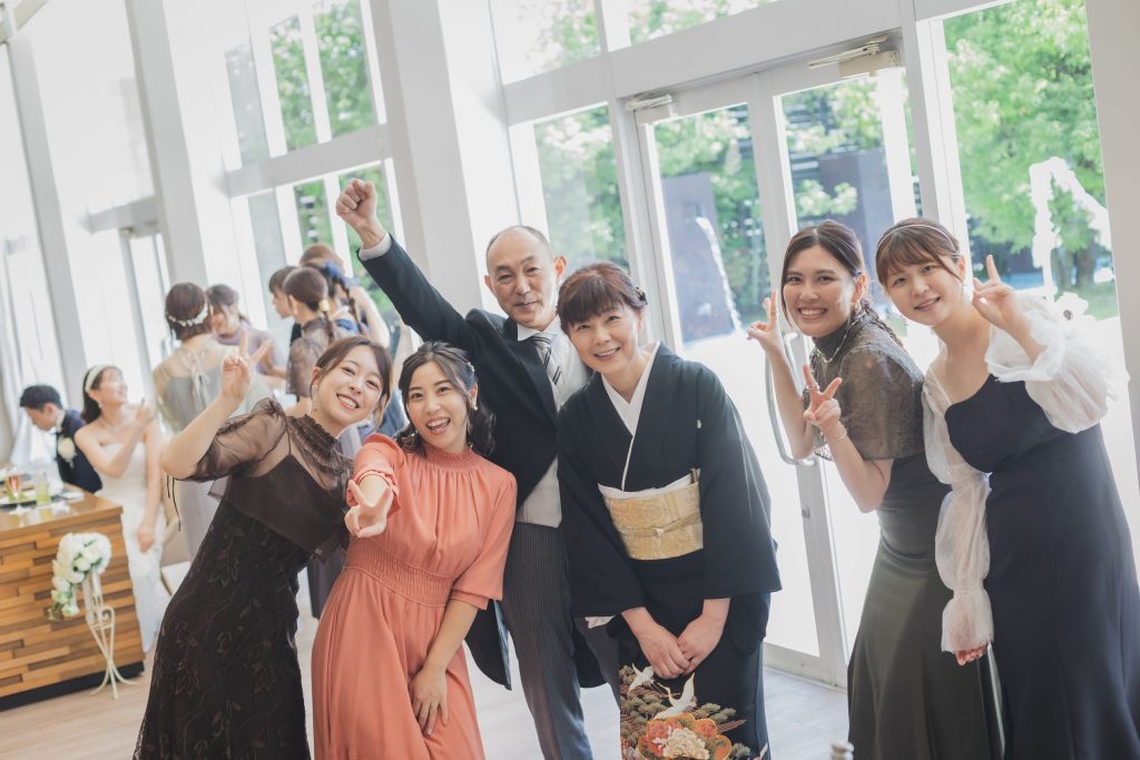 たくさんのゲストに囲まれて幸せそうな笑顔が溢れます
