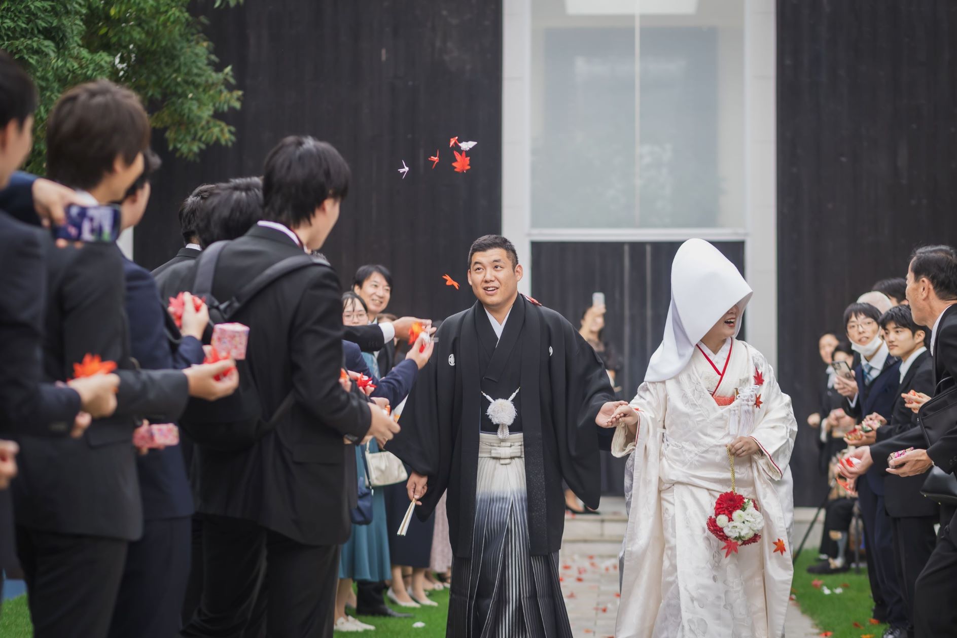 もみじシャワーなど、おふたりらしさを出すこともできます。