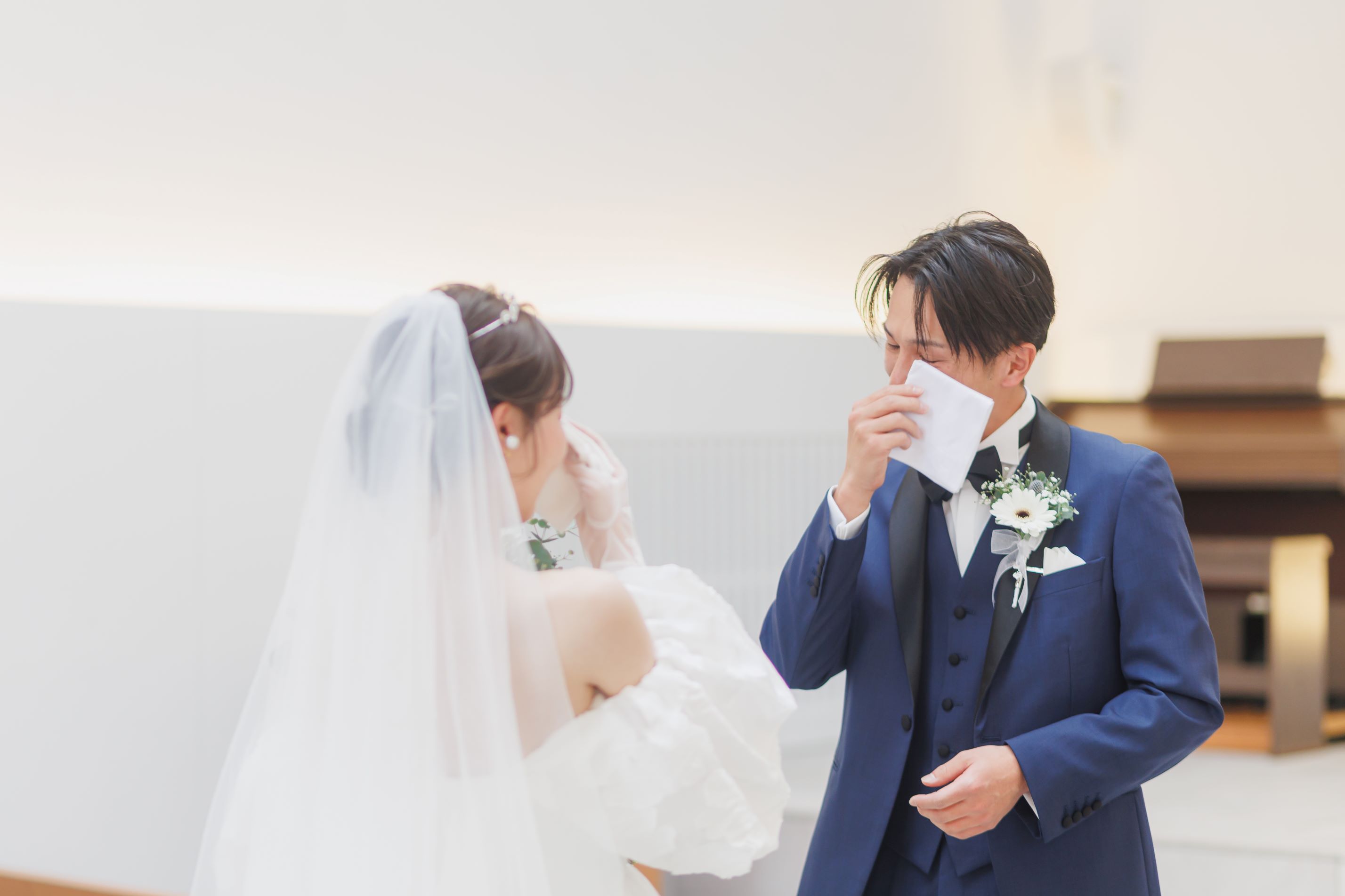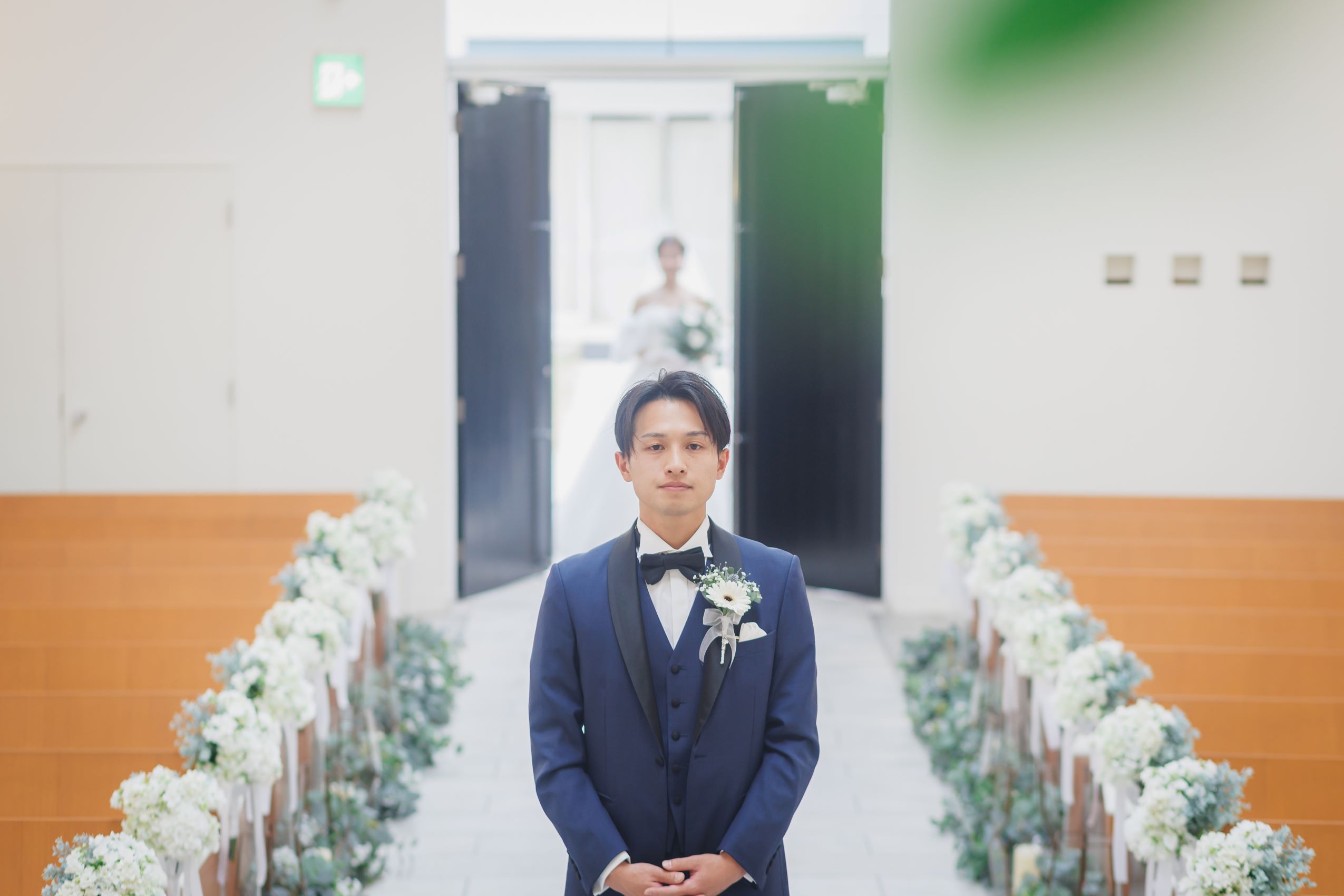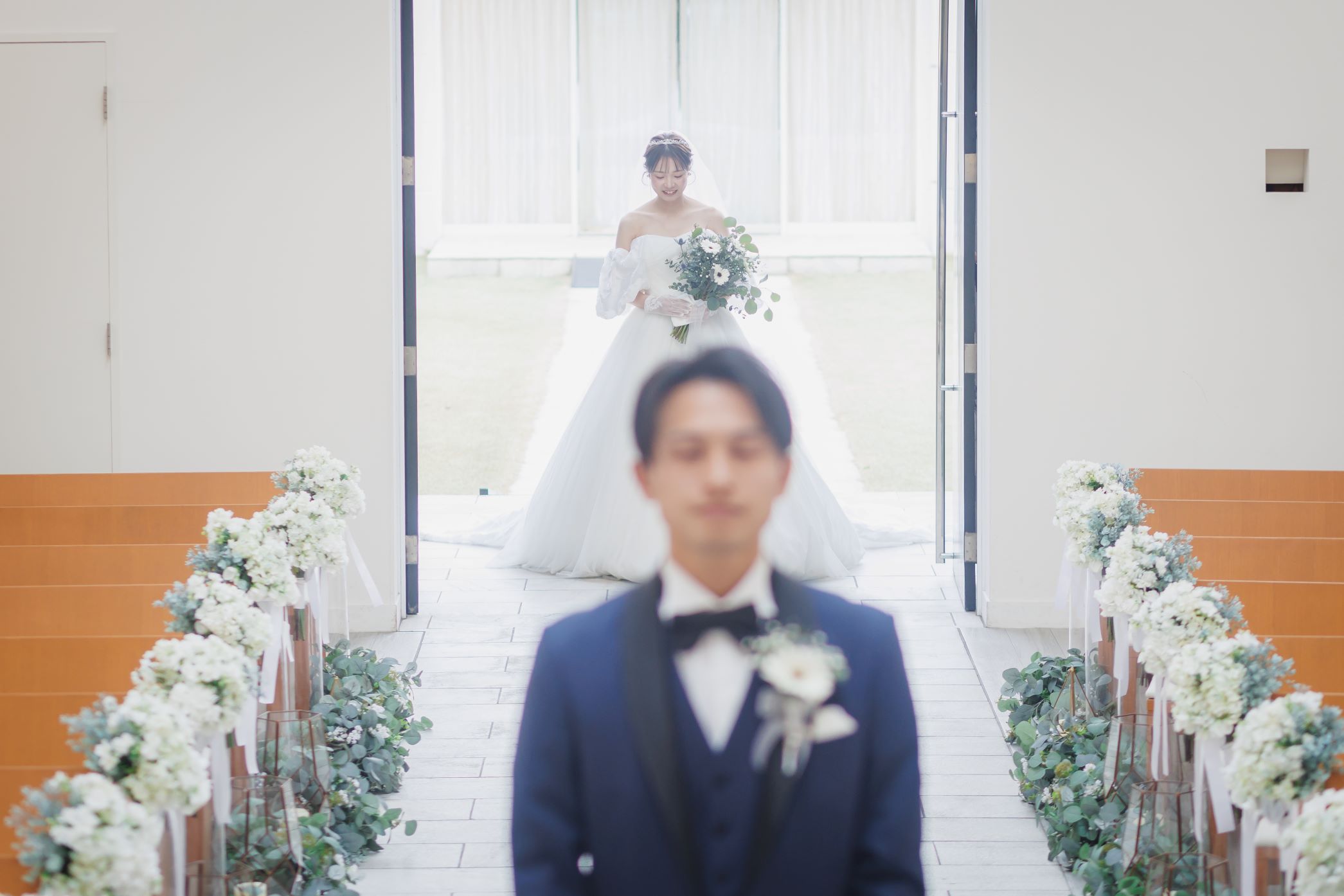 扉が開いて、新郎様の後ろ姿へ歩み寄るとき