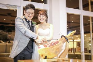 先日行わせて頂いたお式では、なんと生ハムに入刀を行い