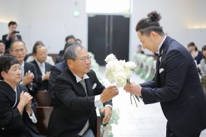 新郎から新婦へ12本のバラを贈り、ゲストの前でプロポーズをするセレモニーです