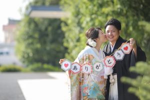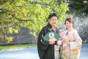 ドレスだけでなく、和装もとっても映えるガーデンなので