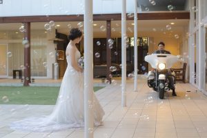 先日のご結婚式では、新婦様が待つところに、新郎様がバイクで登場!!!