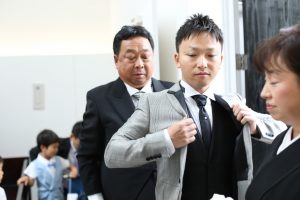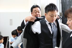 新郎様も挙式で最後の支度を親御様にお願い