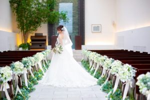 ブランレヴューのチャペルはグリーンとホワイト、ブラウンを基調に造られたチャペル。