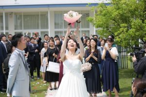 ブーケをキャッチした人は次に結婚をすることができるといわれています。