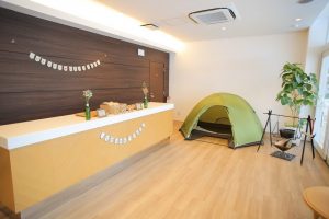 受付もキャンプ感を出したコーディネートで彩ったり♪