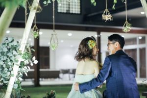 結婚式のおひらき後、ライトアップされたフォトスポットでの撮影♩