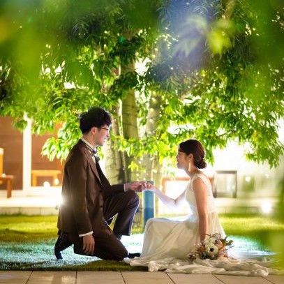 まるで海外映画のような一瞬を♡   ナイトガーデンに輝くイルミネーションをバック...