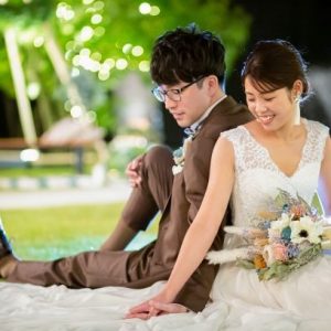 ナイトガーデンでの前撮り 大人っぽく幻想的な雰囲気に包まれる夜のガーデン 昼間の明るいガーデンとはまた...