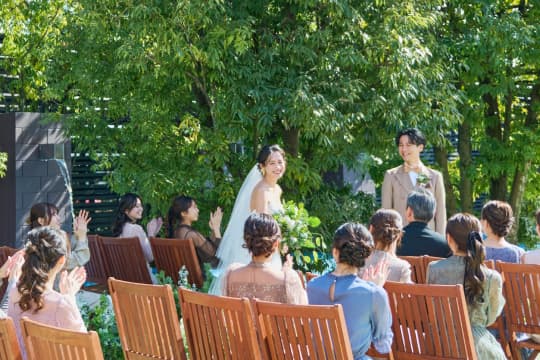 形式にとらわれず、ふたりの想いやストーリーを大切にした挙式が叶います。手紙の朗読やリングリレー、ご家族へのサプライズ演出など、自由なスタイルでセレモニーの内容を一緒に考えていきます。