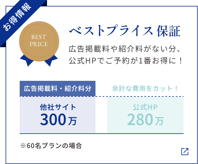 《26年6月迄|最大150万円特典》新緑ベストシーズン!コスパ重視の方◎準備期間3か月安心プラン*