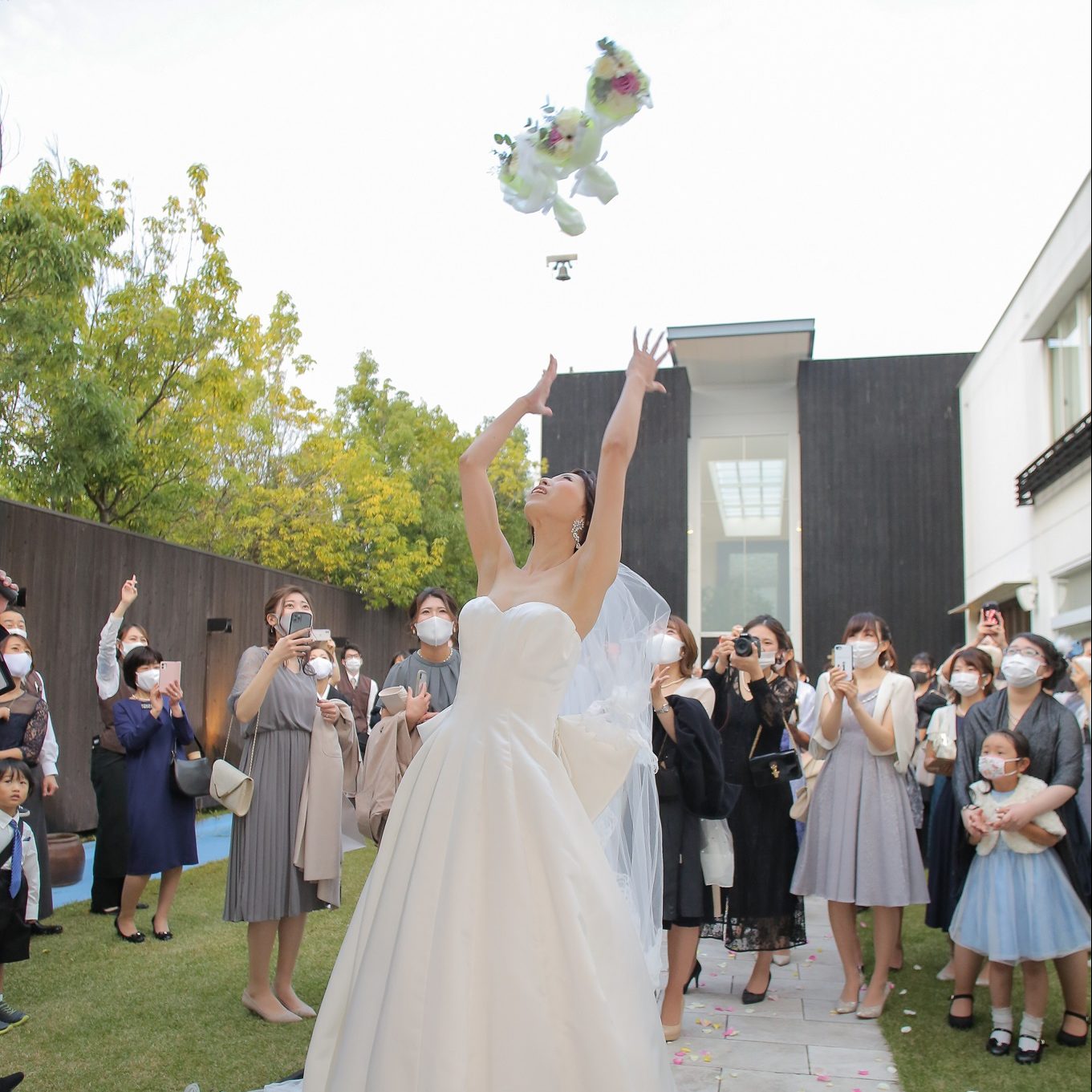 ブーケトスでは女性のゲストの方々に1つのブーケに見せかけて手から放つと本当は3つのブーケというサプライズをし、驚きの歓声が聞けてすごく嬉しかったです!