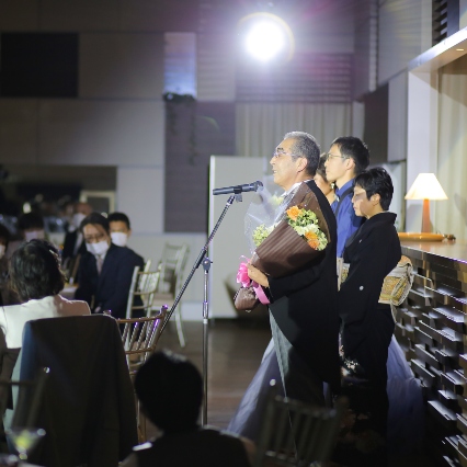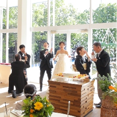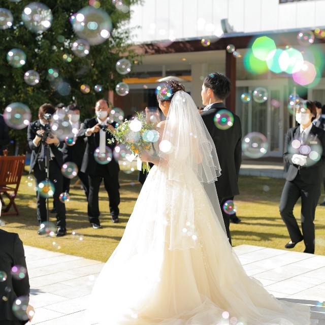 コロナ渦で大変な状況の中、一時は結婚式を挙げられるかどうか不安でいっぱいでしたが、無事に結婚式を挙げることができて本当に良かったです。また、心配していた天気や気温も、その心配を吹き飛ばす程の大晴天の中で行うことができ、ゲストの方も過ごしやすかったかなと思いました。ゲストの方ともこうして顔を合わせることができて、私たちも嬉しかったです。当日はあっという間に終わってしまいましたが、ゲストの皆さんと楽しい時間を共有することができて、心に残る素敵な結婚式になりました。自分たちのやりたかったことを実現できたのも、プランナーさんはじめ、スタッフの方のサポートがあったからだと感謝しております。