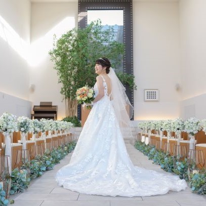 この式場に決めたのは、素敵なガーデンとチャペルがとても綺麗で、1日1組限定だというところに魅力を感じたからです。ガーデンには、緑が広がっており、写真が映えるフォトスペースがあります。チャペルは、白を基調とした温かみのある空間です。また、ガーデンでのシャボン玉の演出にも心が惹かれました。