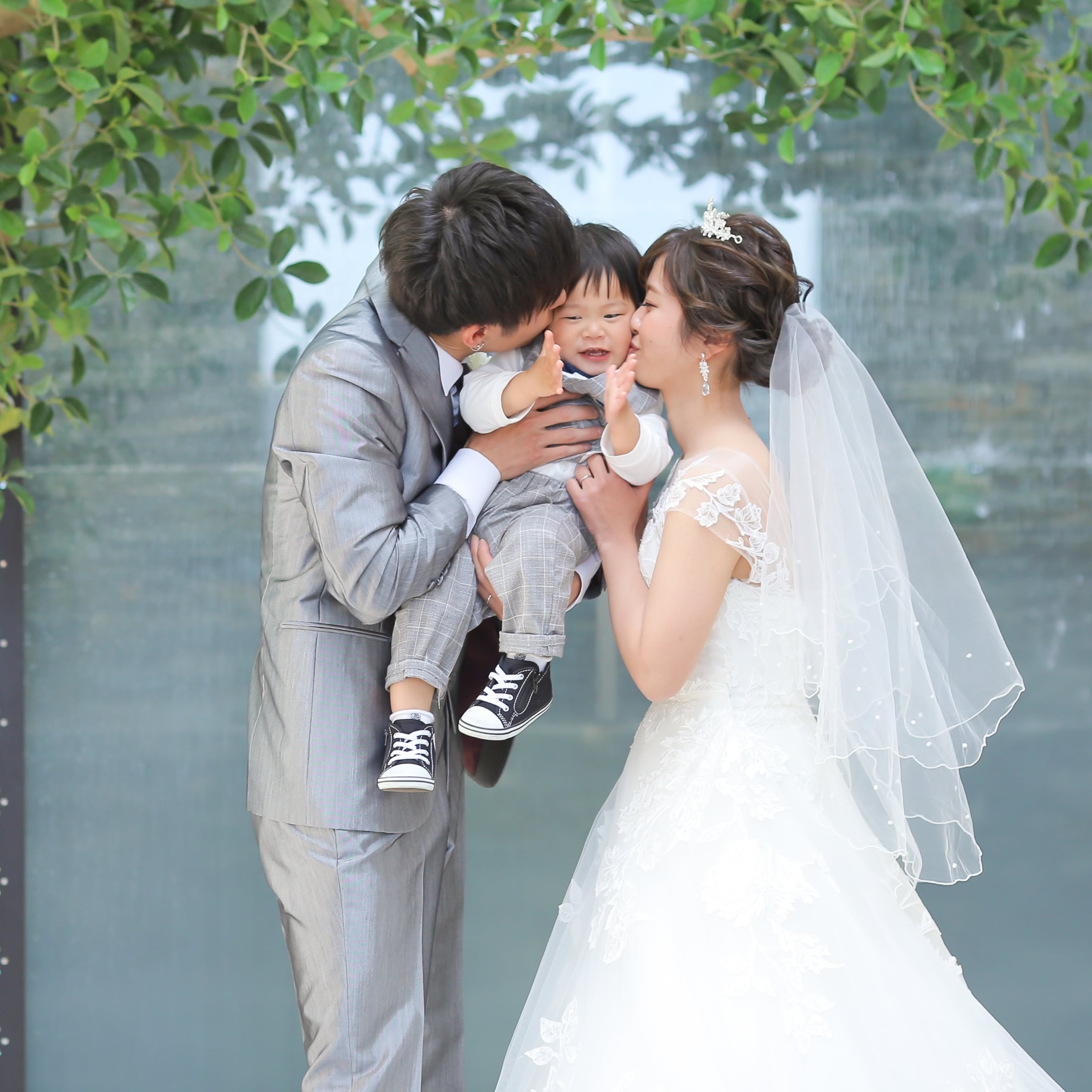 誓いのキスを子供にするなど子供と一緒に楽しめるような時間を取り入れました。