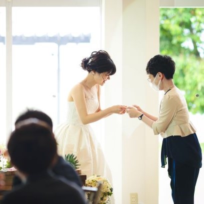 コロナの感染対策をしっかり行ったうえで挙式を迎えました。