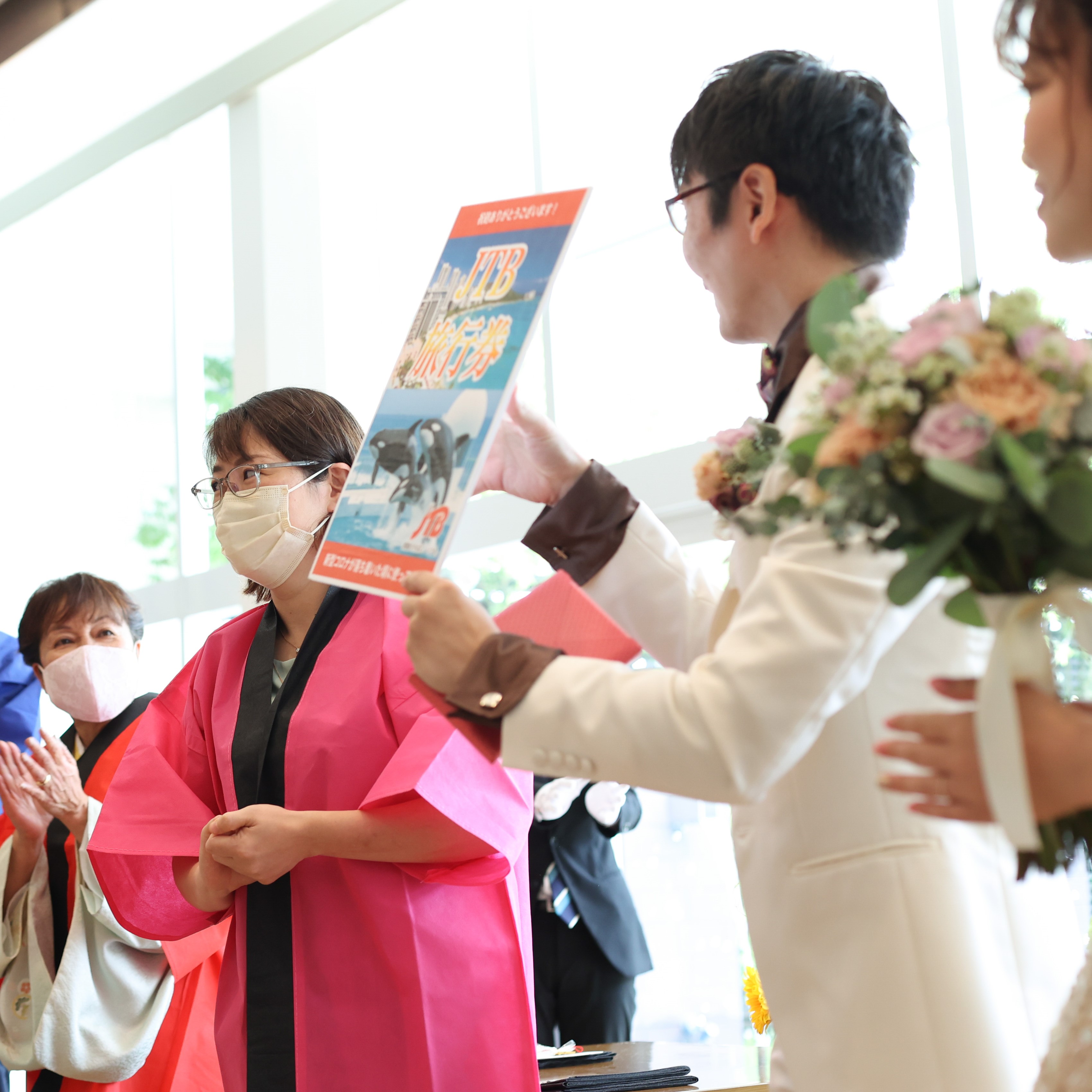 コロナ禍の影響で友達に余興をお願いできなかった為、こちらでゲスト参加型、ゲーム形式の余興を準備しました。