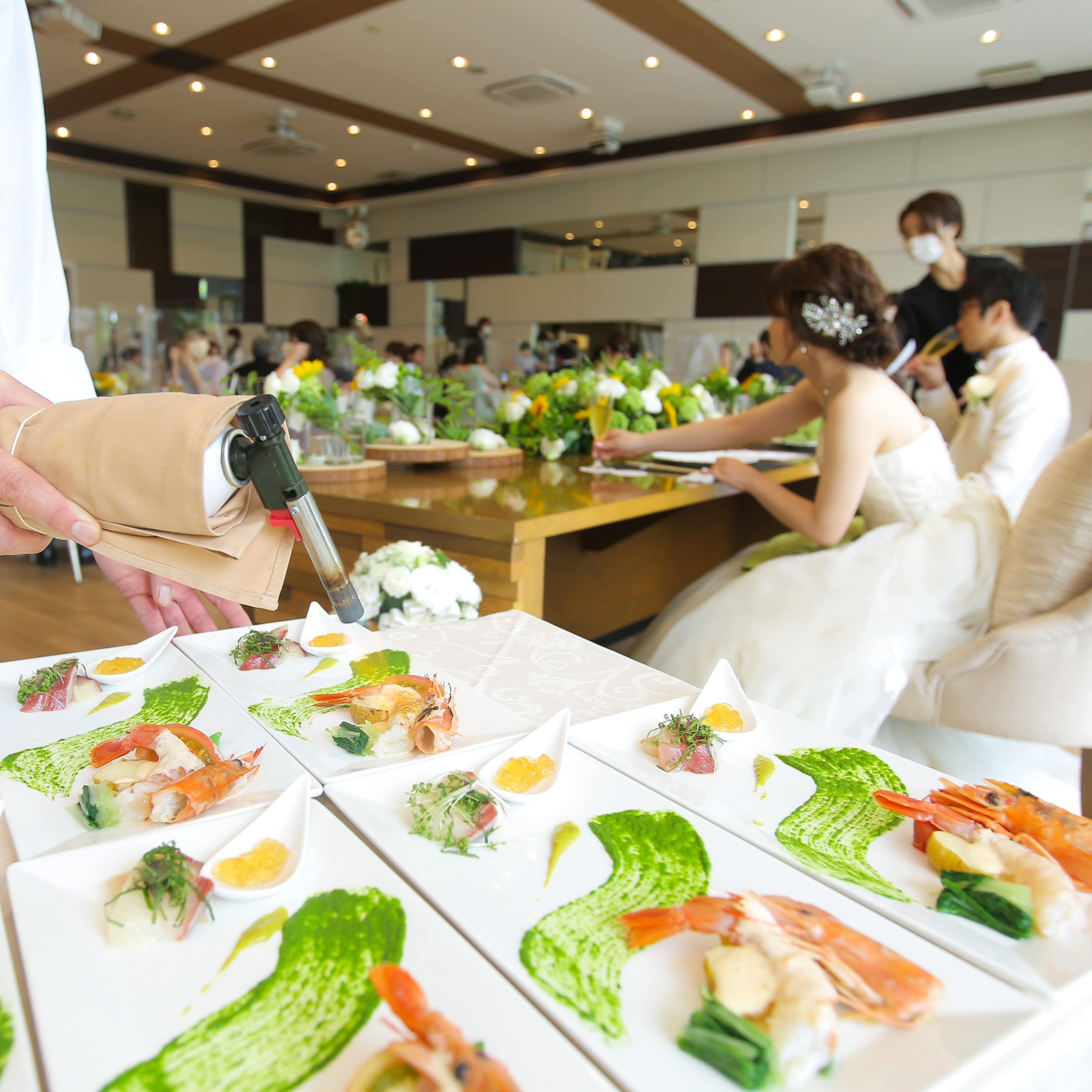 結婚式の数日前の感染症拡大により、お酒の提供ができなくなり、列席者の方へ連絡をとったりしていく中で、当日まで結婚式を本当にやるべきなのかとても悩みました。ですが、プランナーさんをはじめ、式場スタッフの皆様の徹底したコロナ対策のお陰で、今となっては本当にやってよかったと思っています。また、スタッフの皆様には母の持病により、中座の演出を何パターンも提案させて頂き、当日も急遽その場で変更しましたが、見事な連携で素晴らしい対応をして頂きました。母との晴れ舞台をつくることができ、一生の思い出になりました。スタッフの皆様、ありがとうございました。