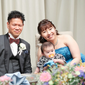 パーテーションをつけてもらって、食事をより楽しんでもらえる様にしてもらったり、親族だけの式だったので、イベントよりもフリータイムが多くなる様にして、私たちも各テーブル事にゆっくり話しが出来たり、息子のところにも気軽に行ける雰囲気作りをして頂きました♪