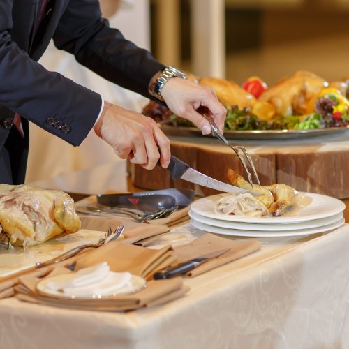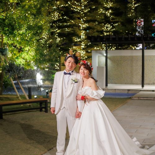 ・式を挙げたのがクリスマスイブだったのでヘアアクセサリーや料理、プチギフト、ウェルカムスペースにクリスマス感を取り入れたこともポイントです。特に、ローストチキン入刀で使用したチキンをその後の料理でゲストの皆さんに提供できるようにしたこともこだわったポイントです。