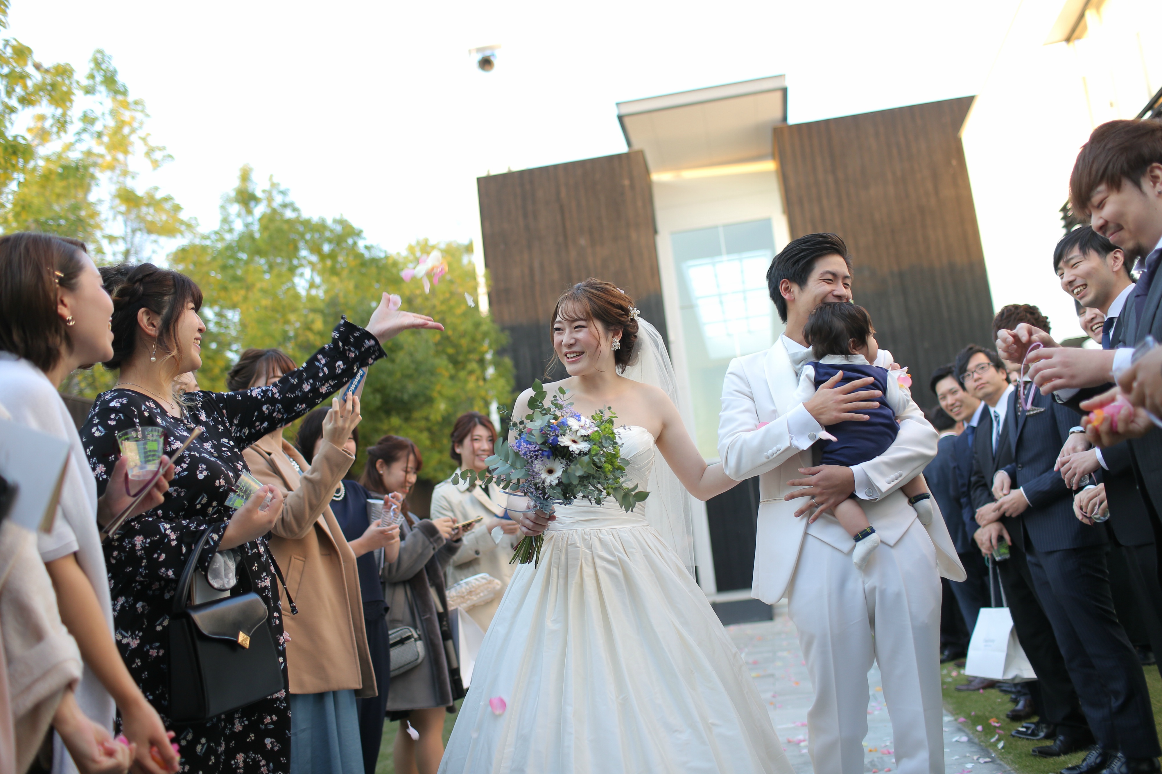 6ヶ月の子供がいる中で、準備、本番は大変かなと思っていましたが、みなさんが協力してくれて素晴らしい結婚式になりました。子供もみなさんにお披露目でき3人で結婚式を挙げて本当によかったと思います。