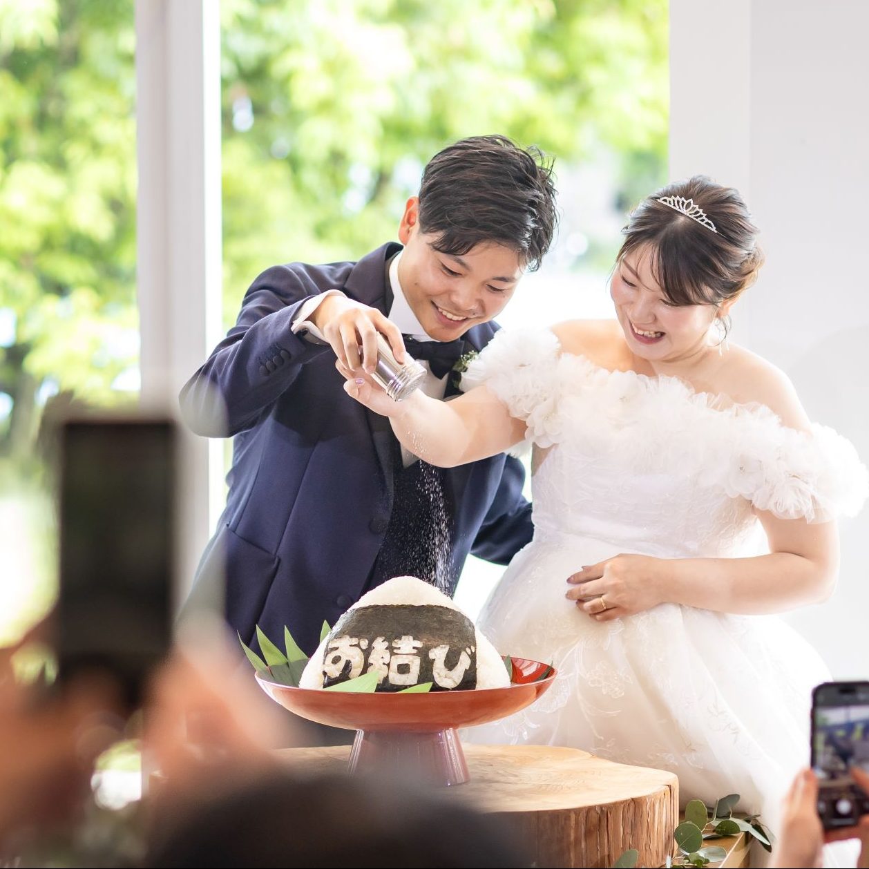 ウエディングケーキの代わりに巨大おむすびを用意したり、
