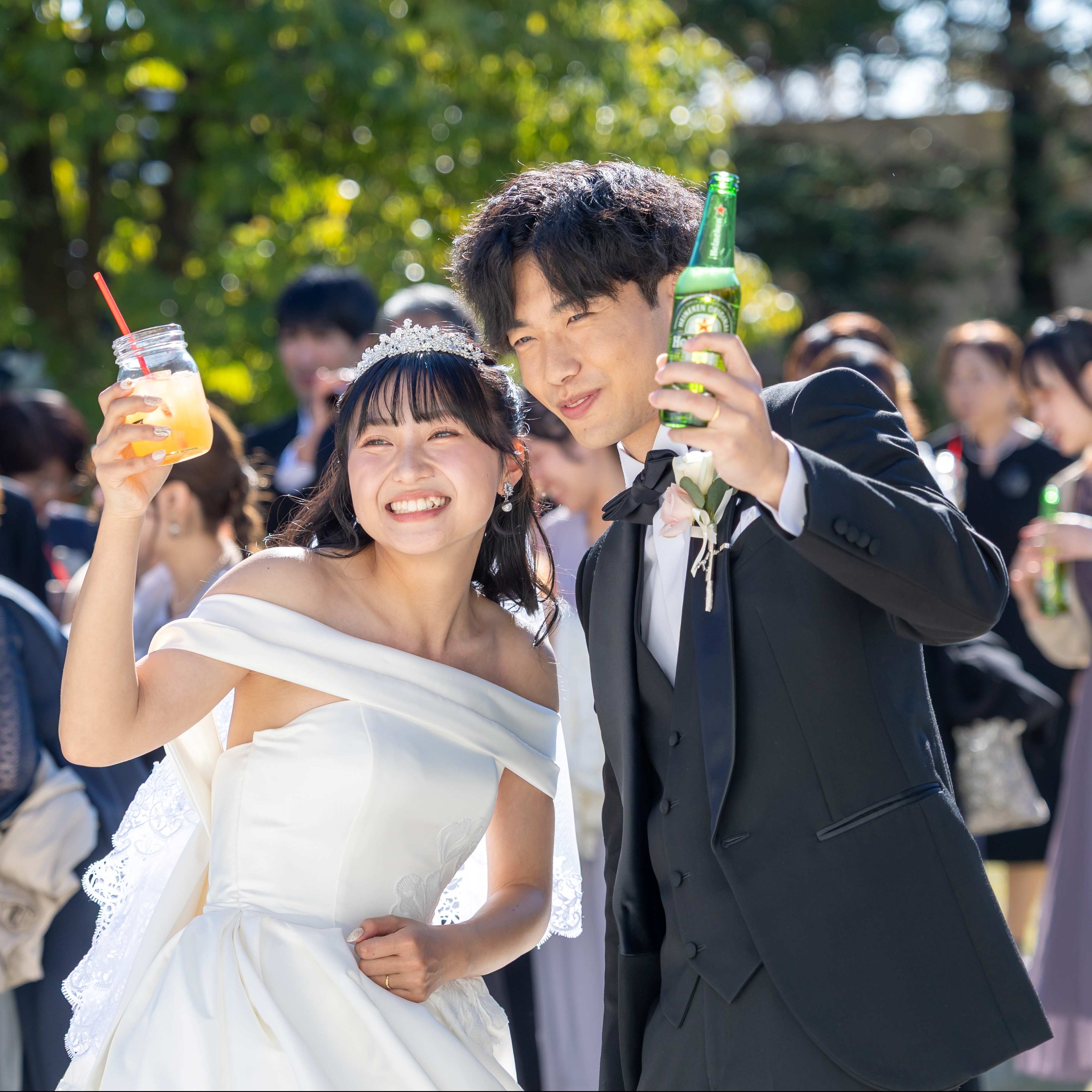 当日は天気に恵まれ、ガーデン乾杯やブッフェ、ガーデンでの写真撮影など、