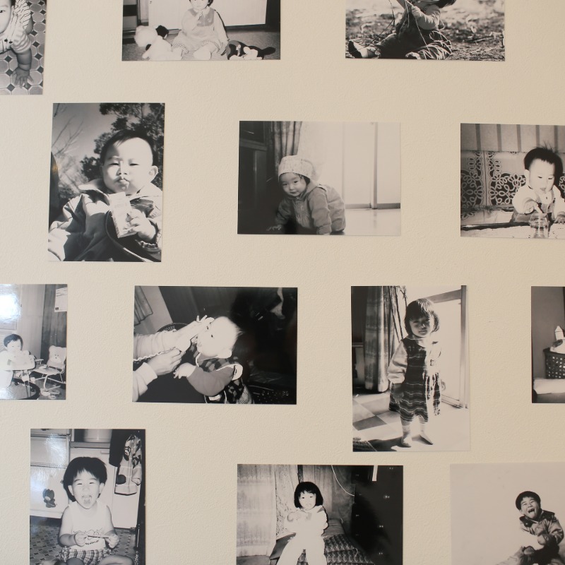 飾った幼い頃の写真は大きめのモノクロで現像したものを