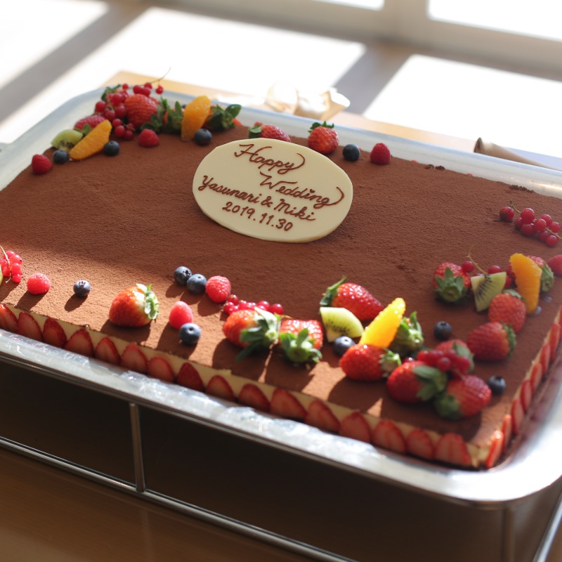ケーキの装花も、私たちは高さの無いティラミスにしたので最初はあった方が良いのかな?と
