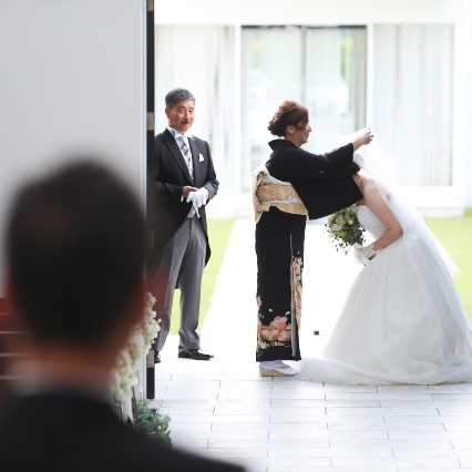 1つだけ、挙式の前に親と対面で過ごす「ペアレントタイム」では緊張もあり、