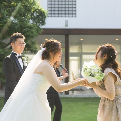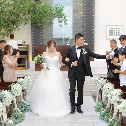 会場に入ったときに一面に広がる中庭がとてもきれいだったので、挙式では独立型のチャペルを使用して、アフターセレモニーでは披露宴会場に隣接しているガーデンを使用して過ごしました。