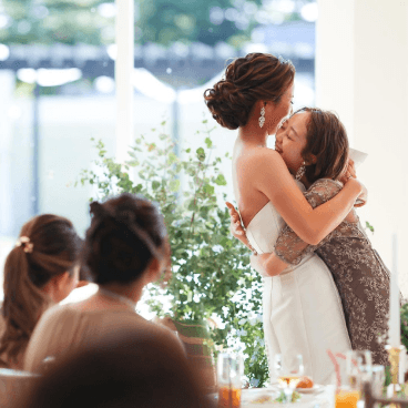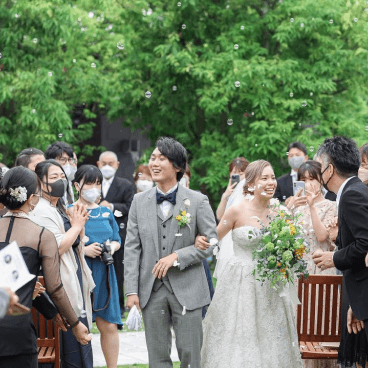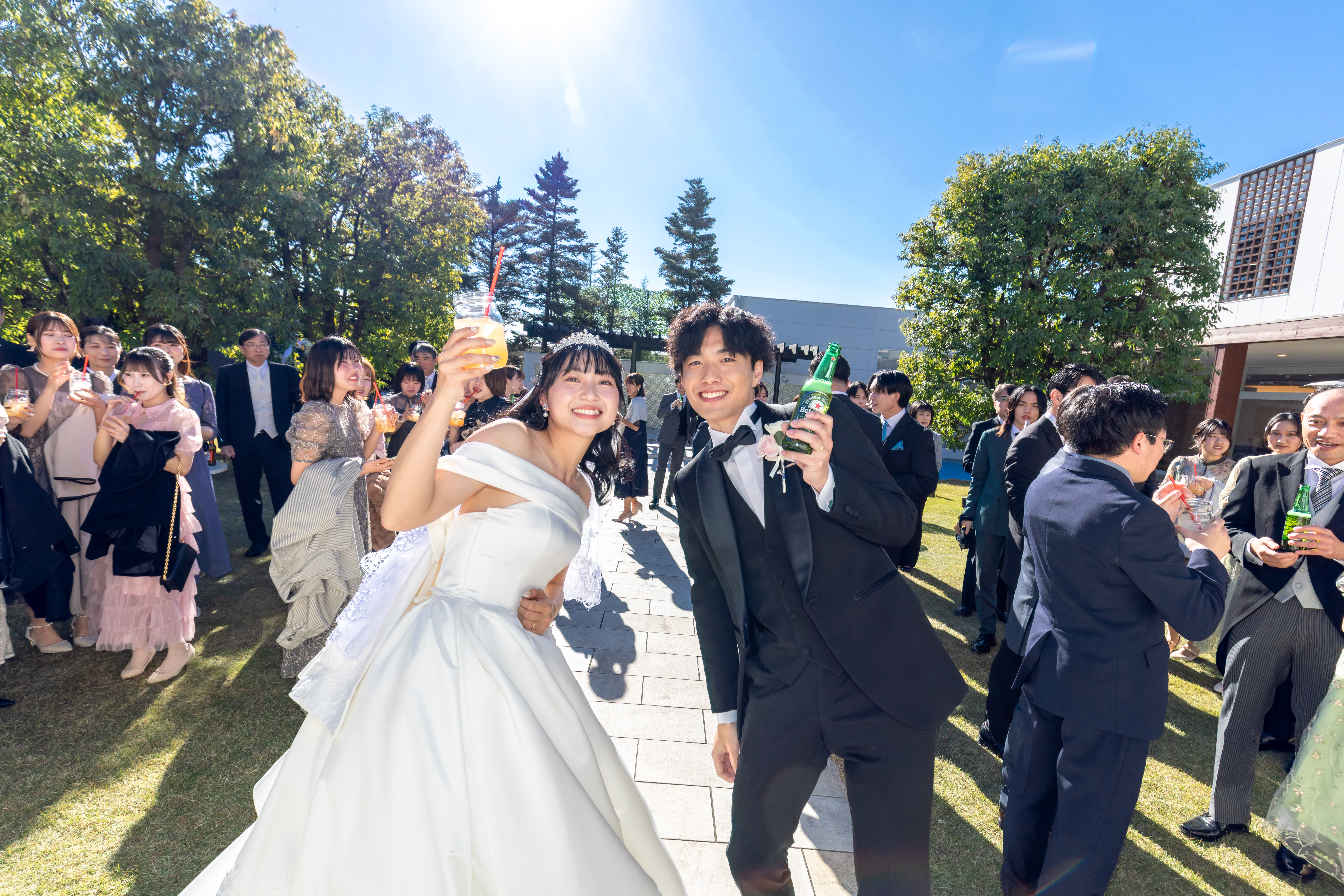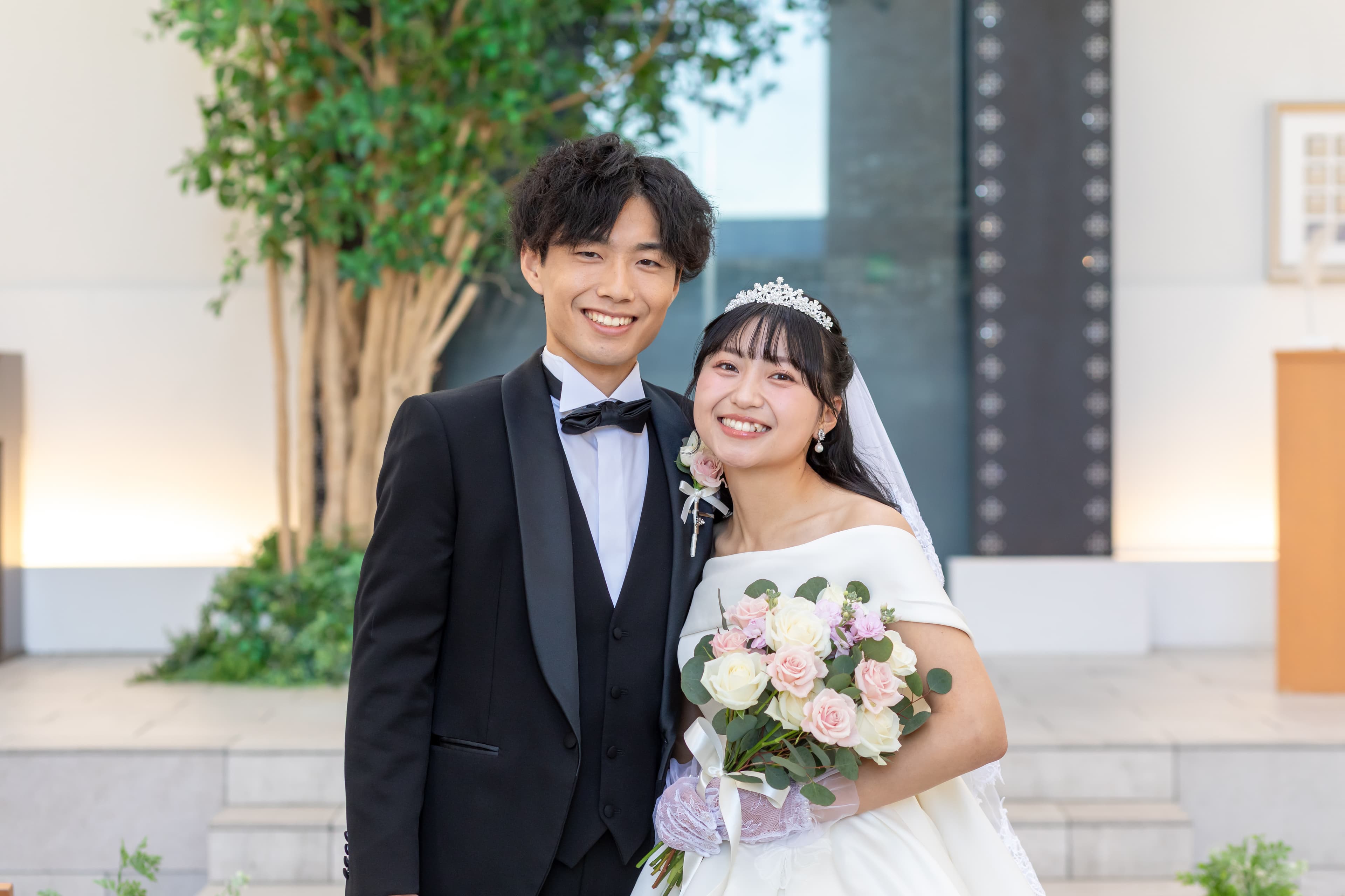 学生時代に出会われたおふたりは、明るく輝くような笑顔がとても印象的で、ご友人やご家族からも深く愛されている、本当に素敵なおふたりです。 そんなおふたりが結婚式で何より大切にされていたのは、「ゲストの皆様とたくさんお話ししたい!写真を撮りたい!」という、周りの方々との温かな繋がりでした。皆様との交流を一番に考え、一分一秒を大切に過ごそうとされる姿がとても印象的でした。