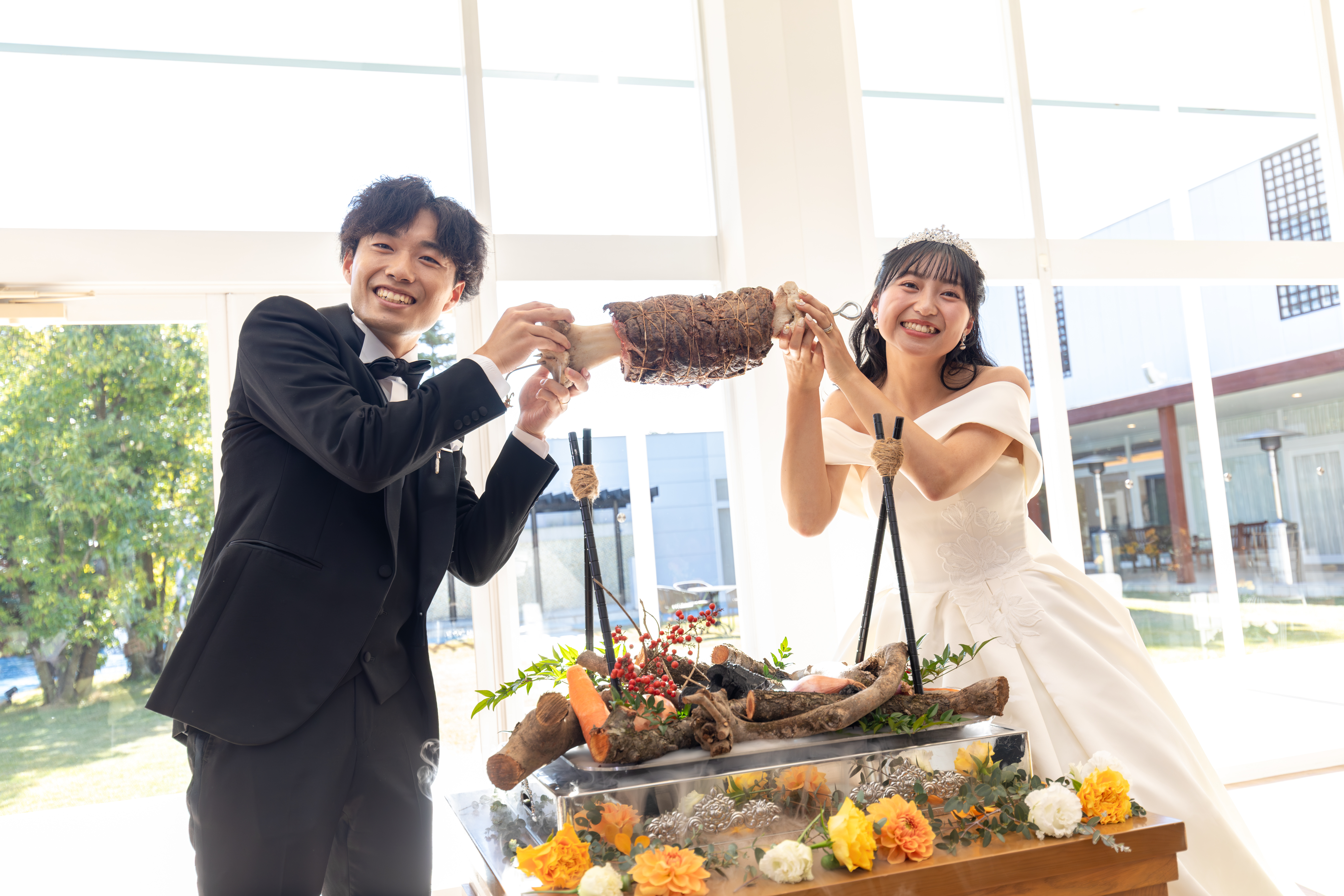 そして、おふたりが最もこだわられた「お肉セレモニー」。ブランレヴューの料理長が、おふたりの理想を形にした最高のお肉をご用意し、皆様の前でお披露目した時の、誇らしげで幸せそうなおふたりの表情は今でも忘れられません。