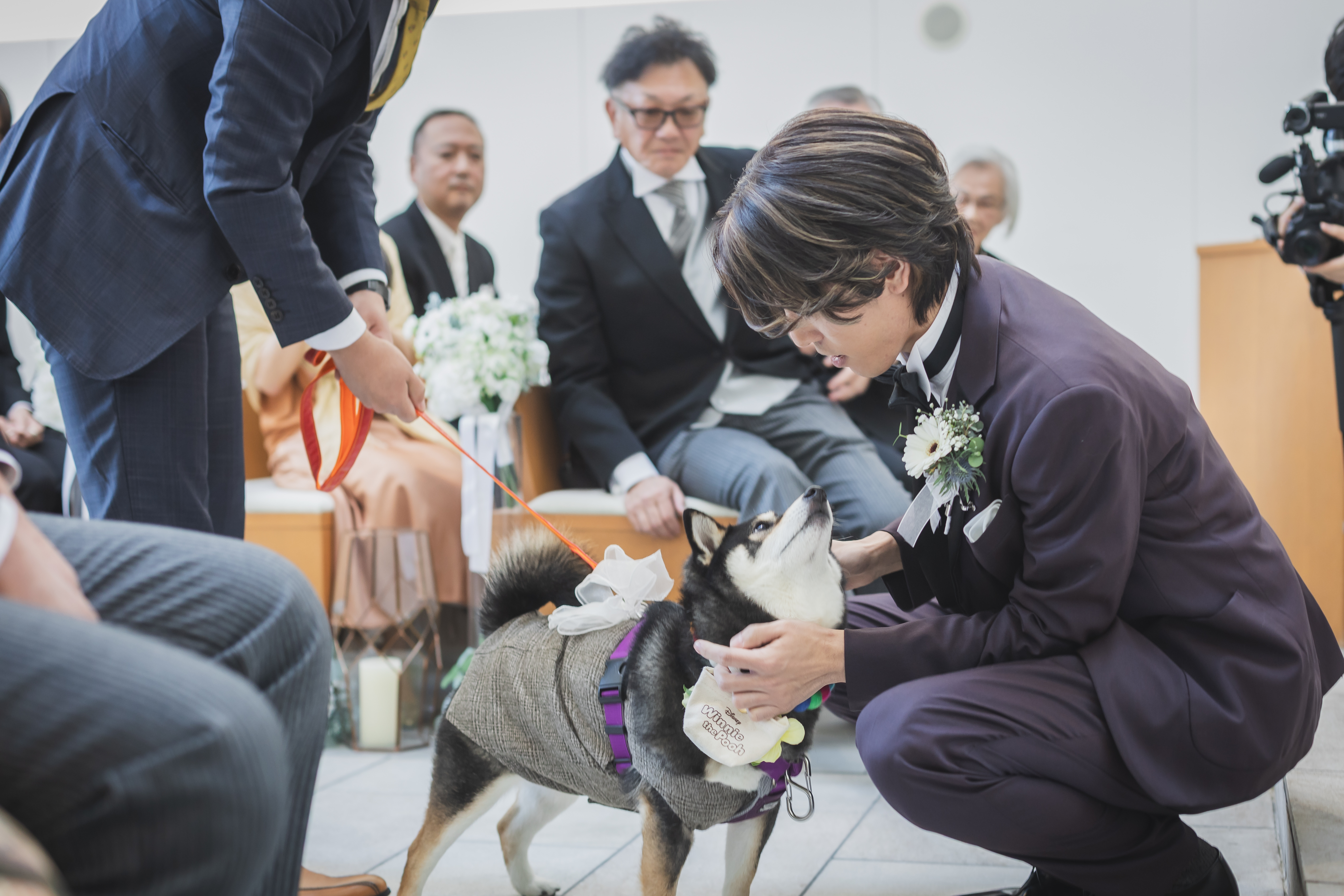 挙式では、おふたりがずっと心に描いていた愛犬による「リングドッグセレモニー」を実現。大切なご家族の一員が見守る中での指輪の交換は、まさに理想が形になった感動的なシーンでした。