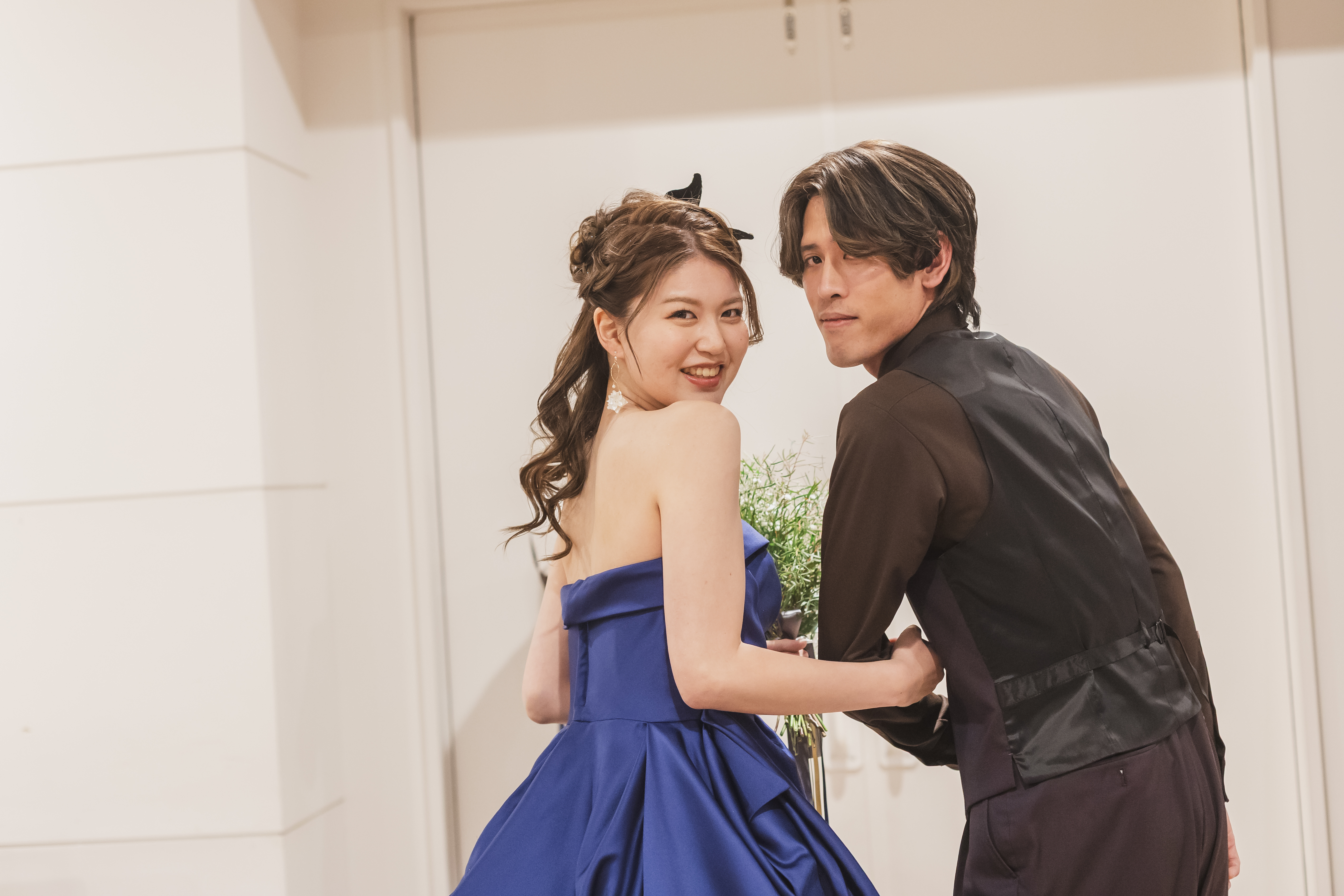 2年記念日に入籍されたとっても仲良しなおふたり。新郎様から贈られた12本のバラでのプロポーズは、式でも大切にしたい最高の思い出です。 航空機製造に携わる新郎様と、助産師の夢を叶えた新婦様。おふたりの共通点は、大好きな「Wピース」と「笑い(www)」へのこだわりです。 自分たちらしく笑いに溢れた式にしたい、そして笑い声の絶えない家庭を築きたいという願いを込め、今日という日を迎えます。"