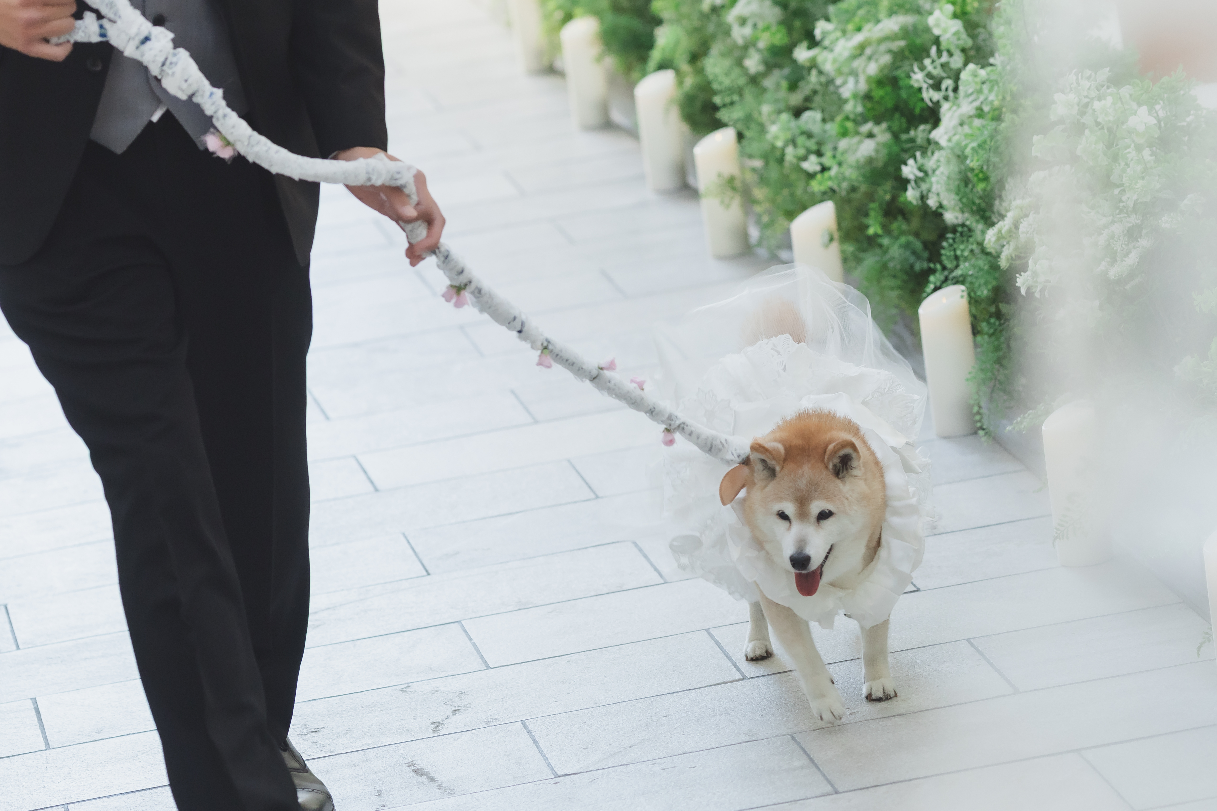 挙式では可愛らしいリングドッグが会場を和ませ、披露宴ではプロジェクションマッピングでのランタン演出にゲストが感動してくださっておりました。